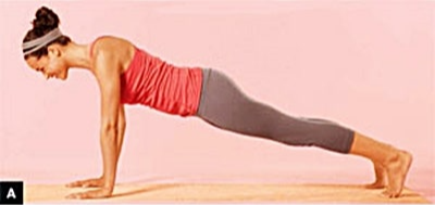- 팔꿈치를 천천히 구부려 상체를 아래로 내립니다.