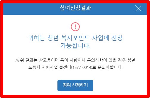 청년복지포인트는 참여자격 확인 후 접수가 가능 하니