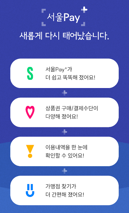서울사랑상품권 판매대행점이 변경됨에 따라 (구)서울Pay+앱의 서비스가 종료되었습니다.