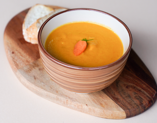 당근을 잘게 썰어 양파, 감자 등과 함께 끓인 후 블렌더로 갈아주면 부드러운 당근 수프가 완성됩니다.